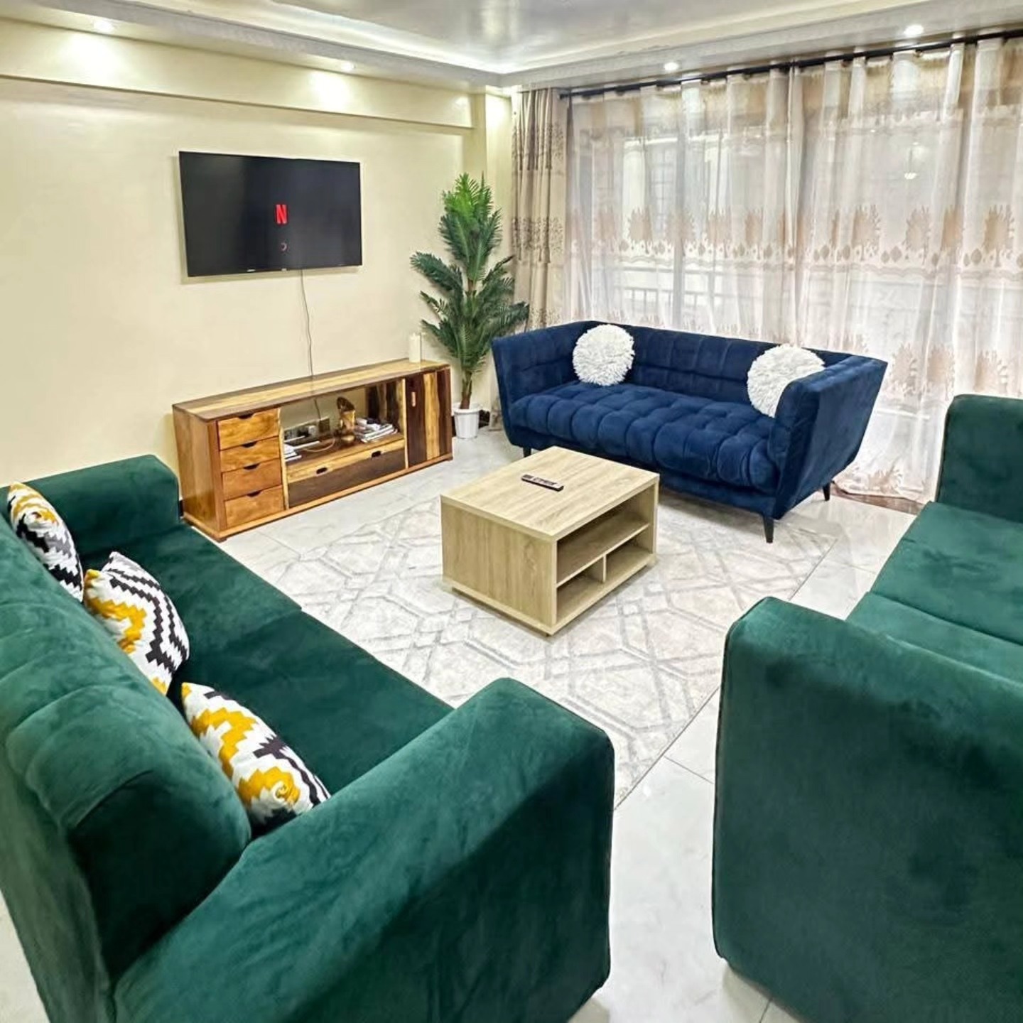 There are two ways to rent this apartment. You can book a unit daily at Kes 7500 or at a monthly rate of Kes 180,000.